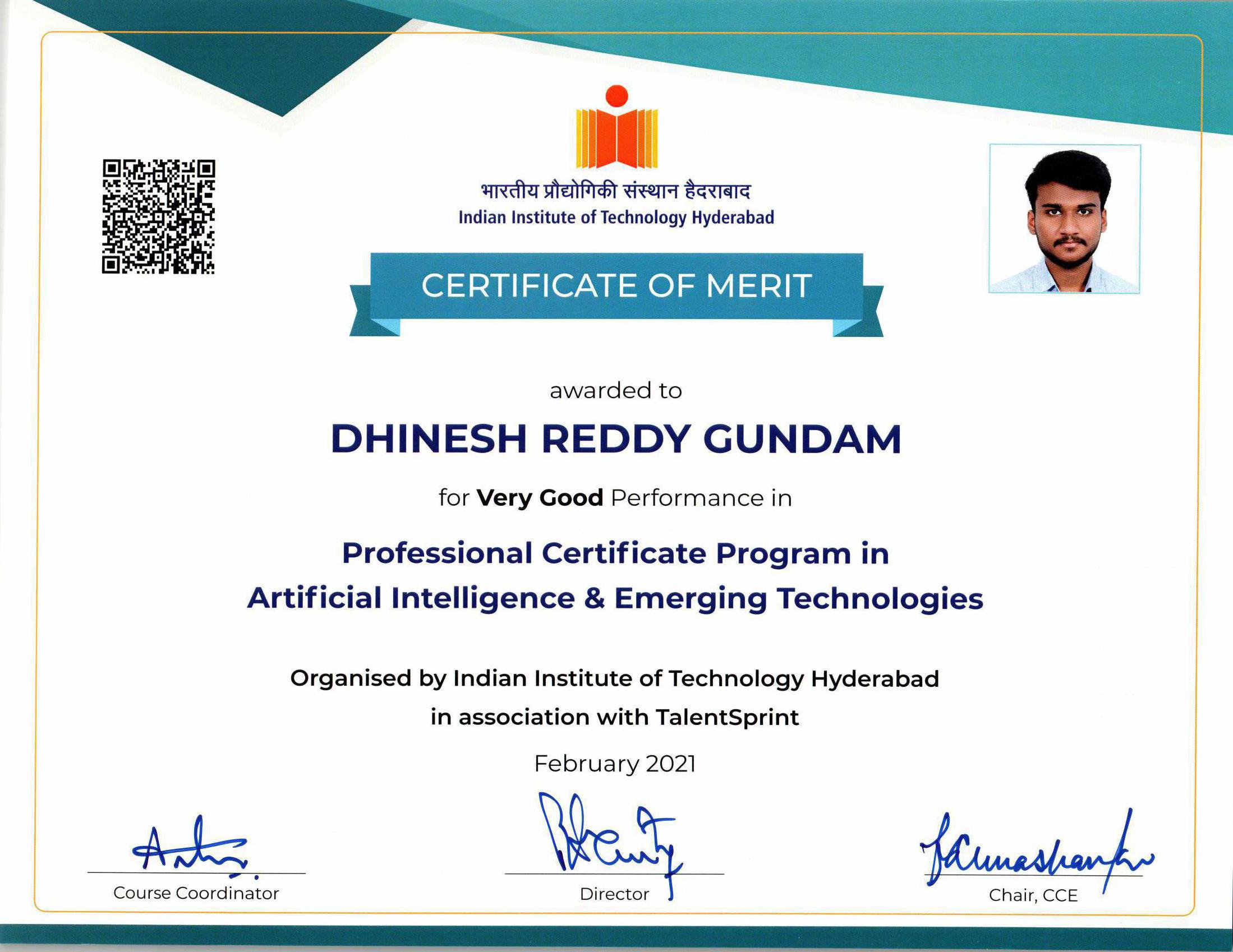 A Professional Certification Program on AI and Emerging Technologies brought together by IIT Hyderabad and TalentSprint. It is an in-depth and comprehensive program that enables students to build expertise in AI and Emerging Technologies. This program provides an opportunity for students to learn from top IIT Hyderabad faculty, apply their learning in projects, assignments, case studies and work on real-world applications like e-commerce recommendations, object recognition, etc. Over 160 students have completed the program so far.
