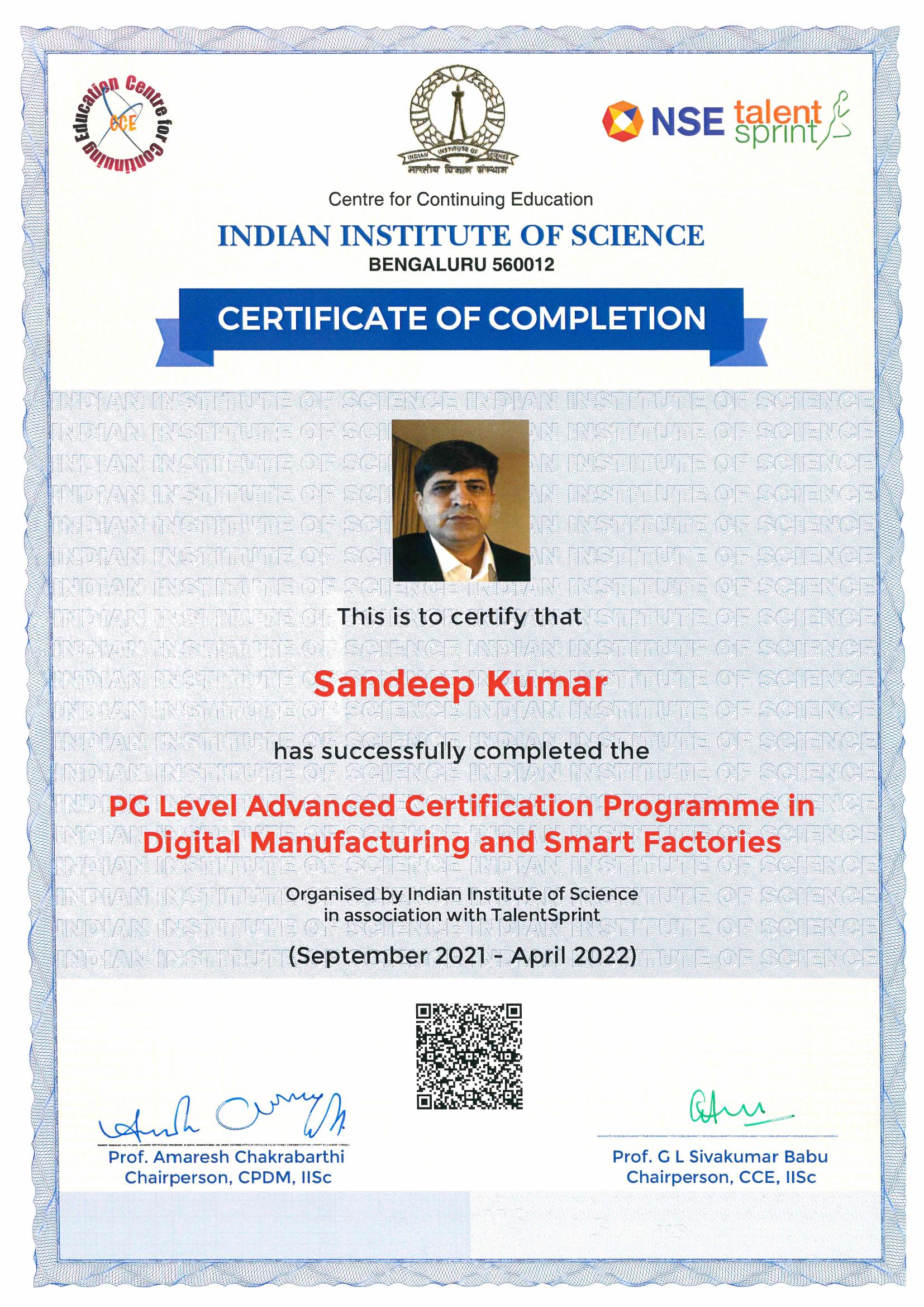 The PG Level Advanced Certification Programme in Digital Manufacturing and Smart Factories, is a 6 months hands-on programme by IISc Bangalore and TalentSprint. The programme most trusted by experienced professionals. For details, visit https://iisc.talentsprint.com/dmsf/faq.html