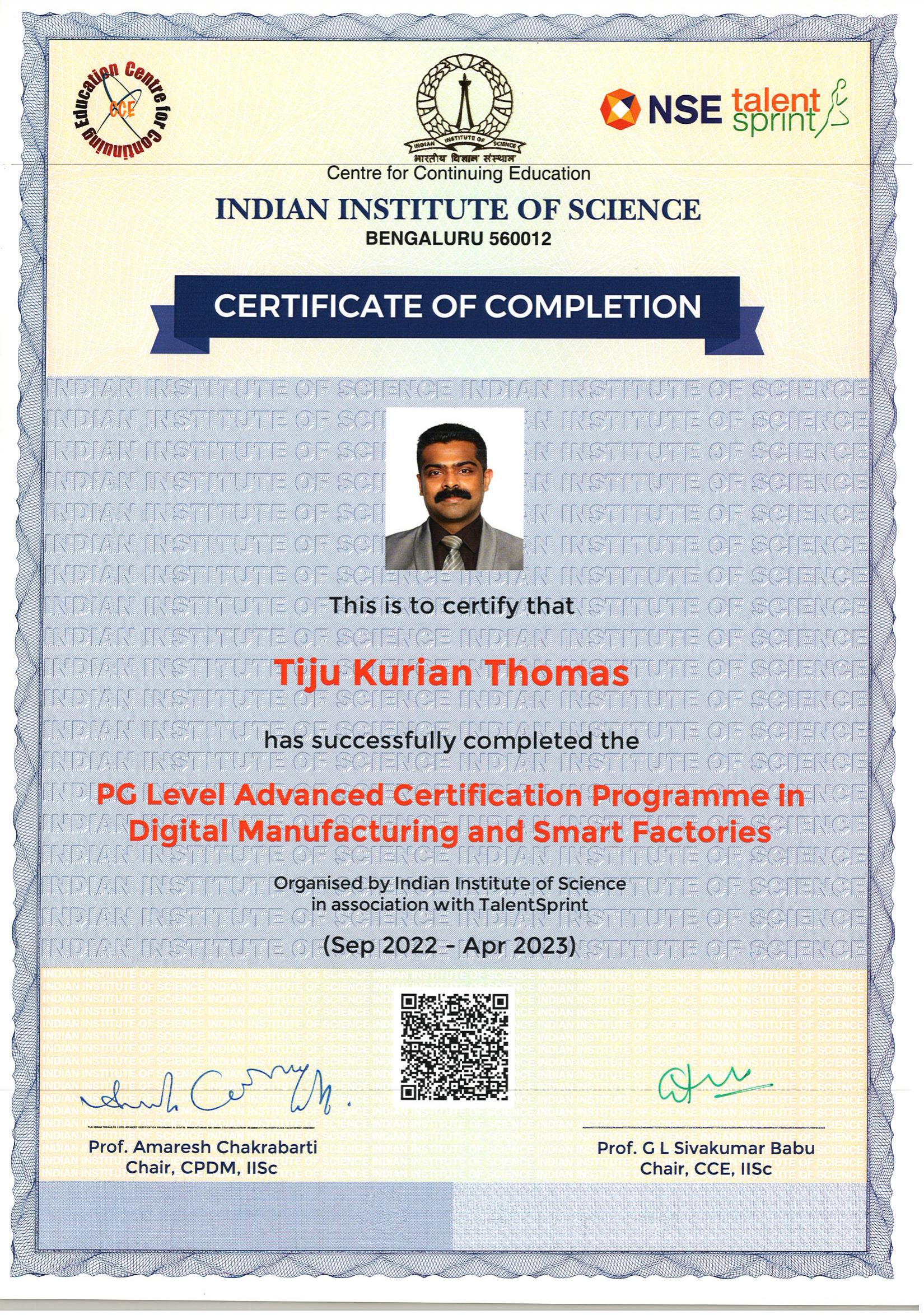 The PG Level Advanced Certification Programme in Digital Manufacturing and Smart Factories, is a 6 months hands-on programme by IISc Bangalore and TalentSprint. The programme most trusted by experienced professionals. For details, visit https://iisc.talentsprint.com/dmsf/faq.html