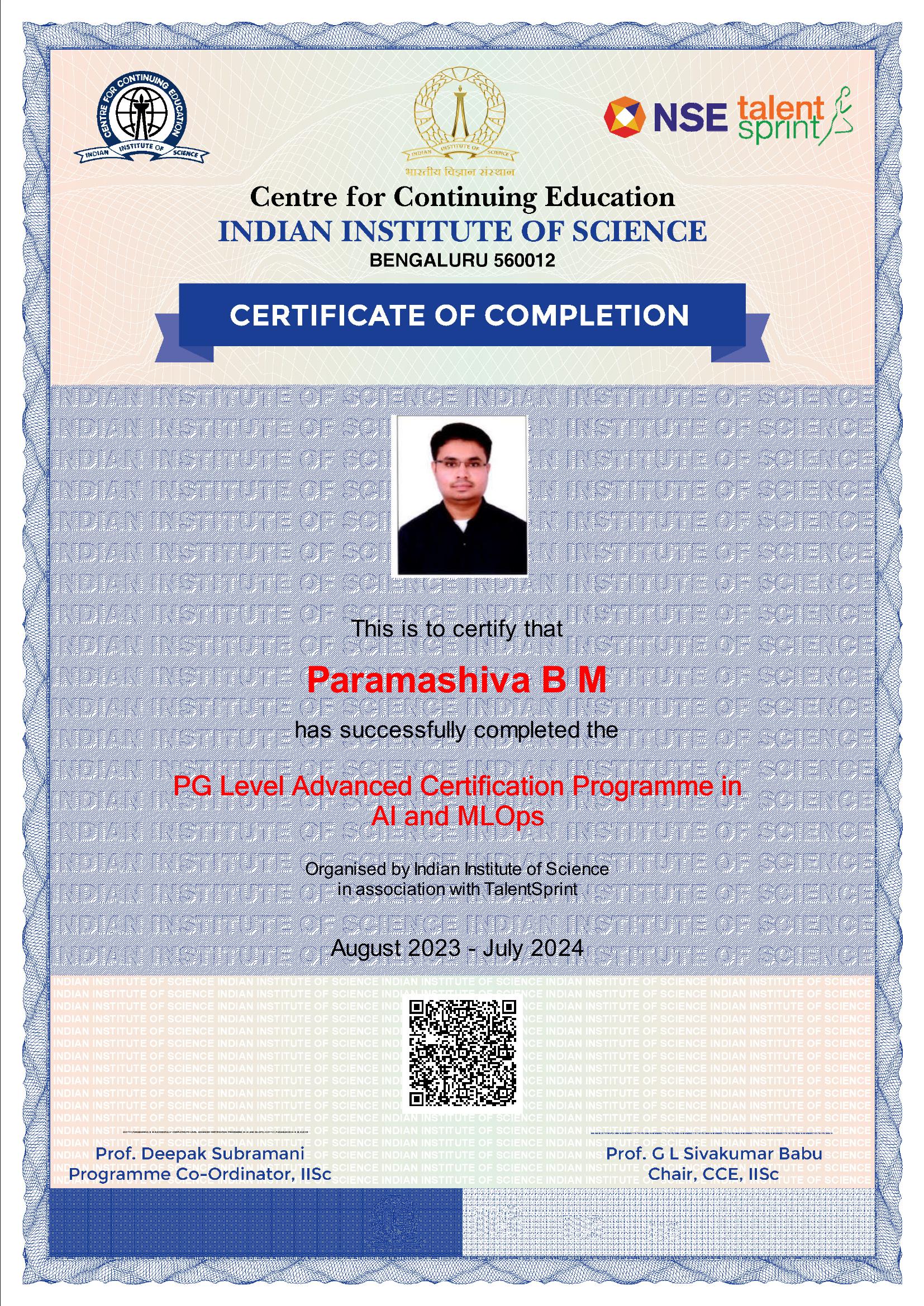 Teaches professionals how to build expertise in end-to-end machine learning systems for real-world applications. Focus on ML operations, provides the knowledge and skills to design, build, deploy, and scale AI/ML models at scale using industry-standard MLOps tools and techniques. Designed by IISc, #1 ranked University (NIRF) and a premier academic institution for world-class education in science, engineering, and design. Delivered by TalentSprint with its deep understanding of the modern technologies, access to industry experts, and a state of art technology platform. Delivered in an executive-friendly format. Unique 5-step learning process of LIVE online faculty-led interactive sessions, capstone projects, mentorship, hackathons, and presentations to ensure fast-track learning.